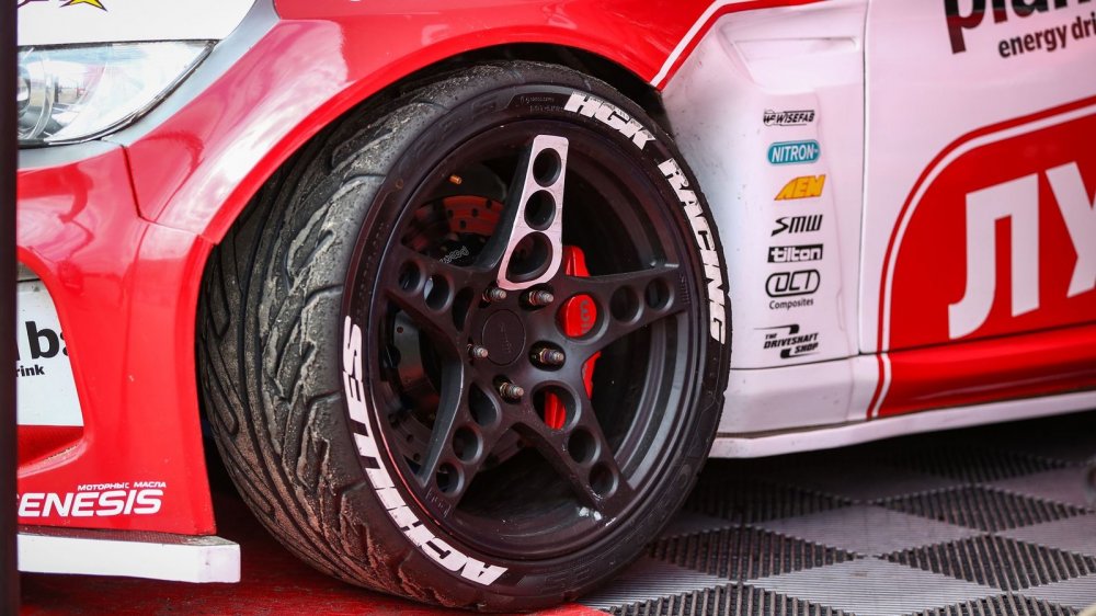 Любопытного вида «перфорированные» колесные диски, прикрывающие перфорированные тормоза, тоже «нарисованы» HGK, а выполнены на заказ на родине Кристапса, в латвийской компании SMW Wheels. Диски кованые, а обуты они в шины Achilles. Для RDS GP используется максимально разрешенная регламентом размерность 265/35/18.