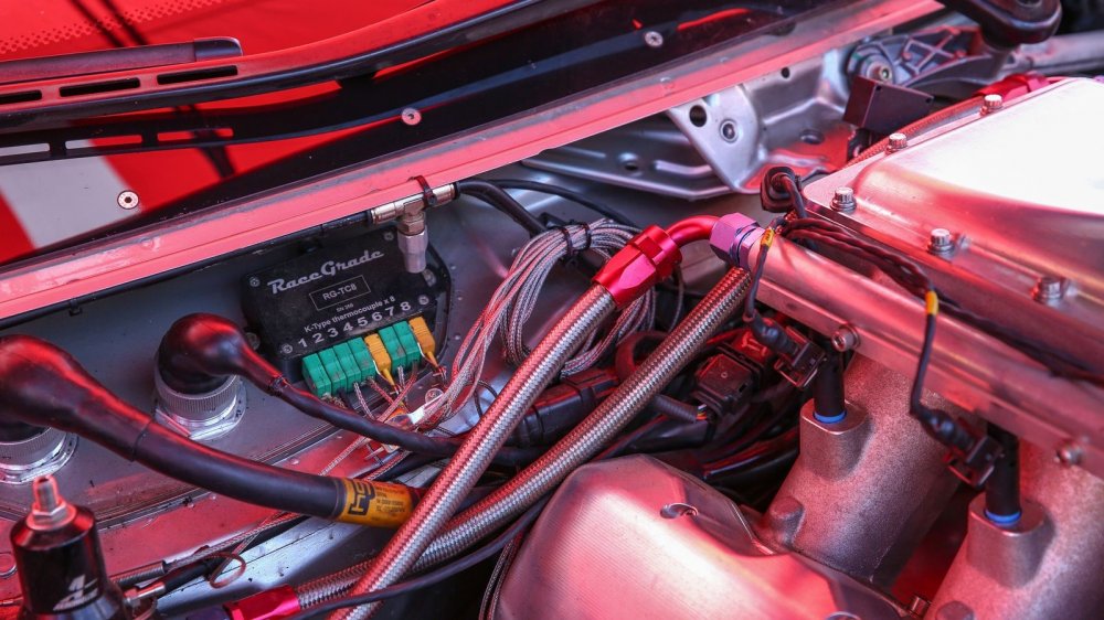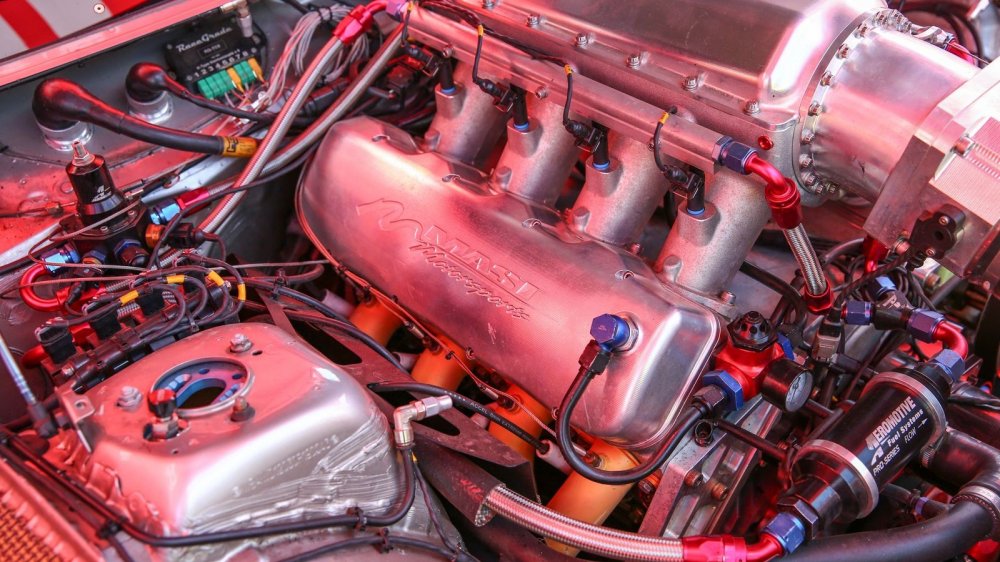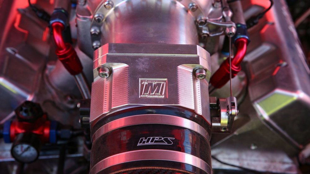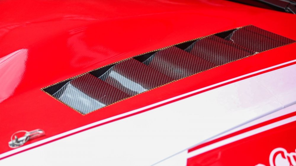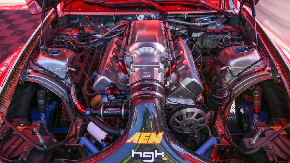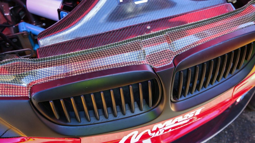 Самое интересное, как это часто бывает, здесь спрятано под капотом. Сам капот не просто так имеет заметный «горб»: это вынужденная мера, поскольку новый мотор под ним просто не помещается. Что не удивительно: ведь это не агрегат от BMW, а крайне популярный у тюнеров и спортсменов всех мастей двигатель V8 семейства LS от GM, комплексно доработанный американской компанией Mast Motorsports. Мы помним об отсутствии наддува, так что единственный способ достичь такой огромной мощности – это увеличить рабочий объем: алюминиевый блок расточен до 466 кубических дюймов – то есть, более 7,6 литра. Степень сжатия увеличена до 14:1, а максимальная мощность в 850 л.с. достигается на спортивном топливе с октановым числом 116 – на таком автомобиль и участвует в гонках. Огромный мотор вдобавок позволяет себя агрессивно крутить: отсечка установлена на 8 500 об/мин.