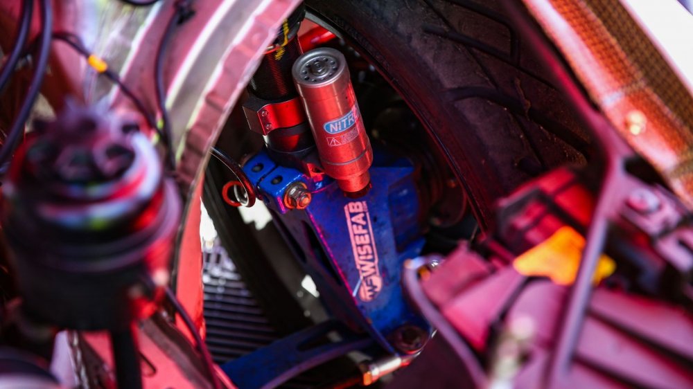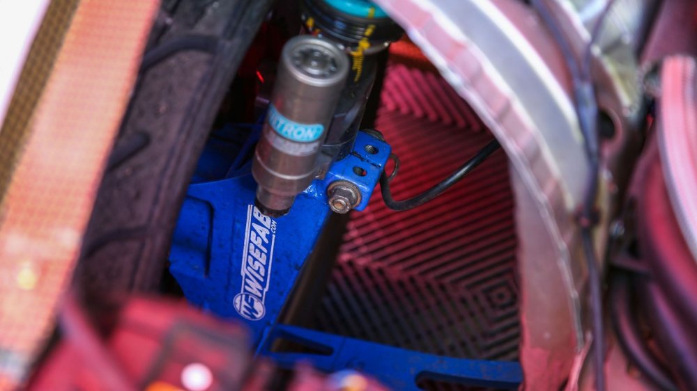 Коробка передач – секвентальная Samsonas. Задний редуктор – от Winters Performance, с возможностью быстрой замены главной пары, которую можно подобрать в зависимости от трассы. Подвеска – от популярной в дрифт-кругах компании Wisefab, причем, как и в случае с мотором, HGK работали с производителем для получения нужной конфигурации. Амортизаторы – от английской фирмы Nitron, тоже дорогие (4 000 евро), но надежные и регулируемые.