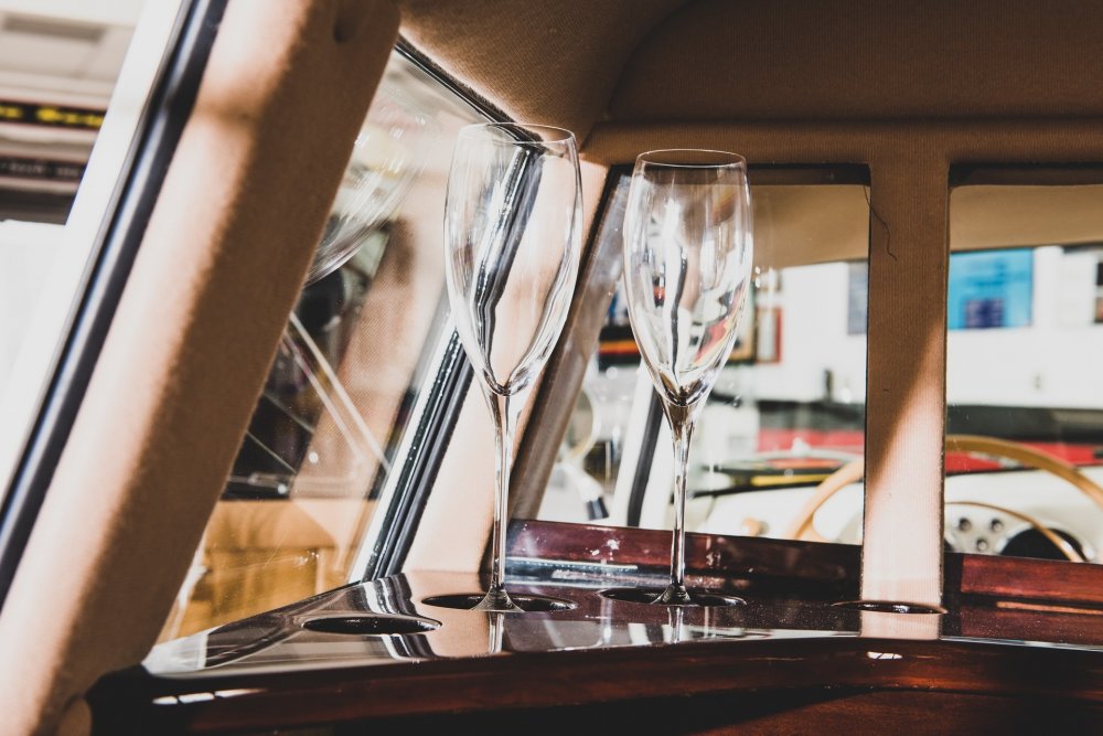 Как и положено лимузину, переднюю часть салона, где располагается водитель, отгородили от пассажирской перегородкой с окошками. За ней имеется деревянная полочка для бокалов, а в боковые стенки вмонтированы часы и термометр в стилистике приборов Porsche 356. Пассажирский отсек рассчитан на двоих – за диваном располагается полка для багажа с ремнями фиксации.