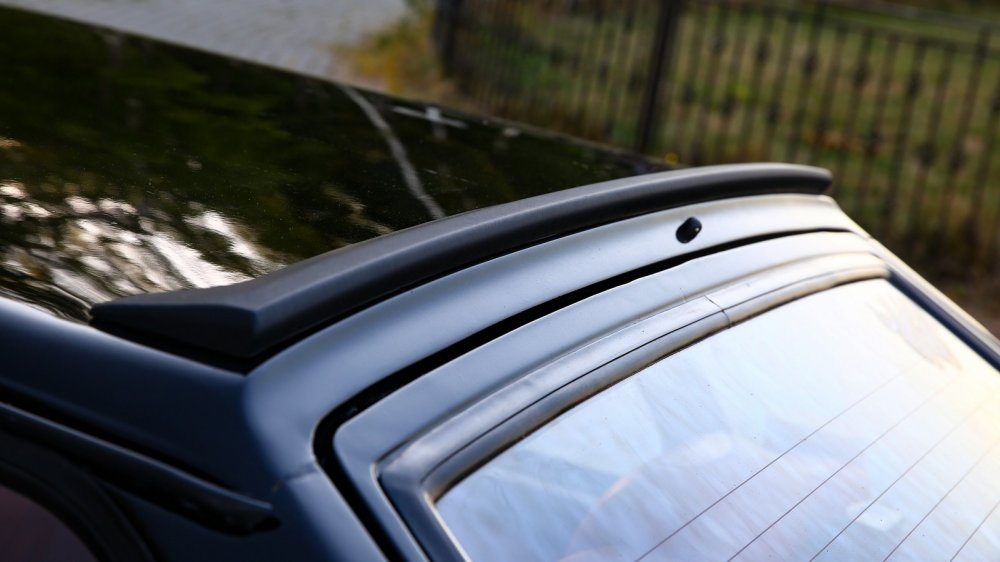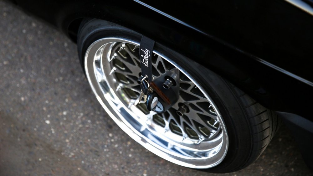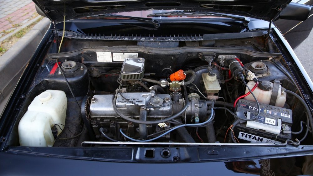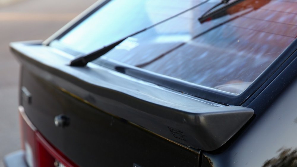 Также из зарубежных дилерских опций можно заметить габариты в бамперах, которые устанавливались дилерами для американского и канадского рынка. На переднем бампере установлена «губа» – но уже не олдскульная, а новодельная, собственного изготовления. Ну а стоит автомобиль на колесных дисках Bridgestone TR-S 1981 года (которые были расширены до 8,5 дюймов спереди и 9 дюймов сзади) с шинами Continental ContiSportContact размерности 195/40 R14. Кузов, с завода бывший красным, перекрашен в черный цвет.