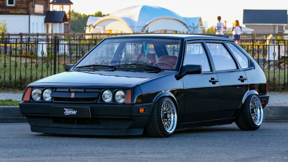 Этот ВАЗ-2109 1988 года выпуска – первый автомобиль Алексея, реэкспортный хэтчбек изначально красного цвета, слегка облагороженный дилерскими «допами». Например, на автомобиле еще тогда, в конце восьмидесятых, были установлены очистители фар, пепельница для задних пассажиров и коробка передач с нестандартной главной парой. По сути, дальнейшая концепция доработок, возникшая на много лет позже, стала продолжением этих мелочей. Целью Алексея было занижение по канонам стэнса, сохранение стокового кузова, но добавление в автомобиль редких дилерских опций, интересных колес и доработка салона с использованием более качественных материалов.