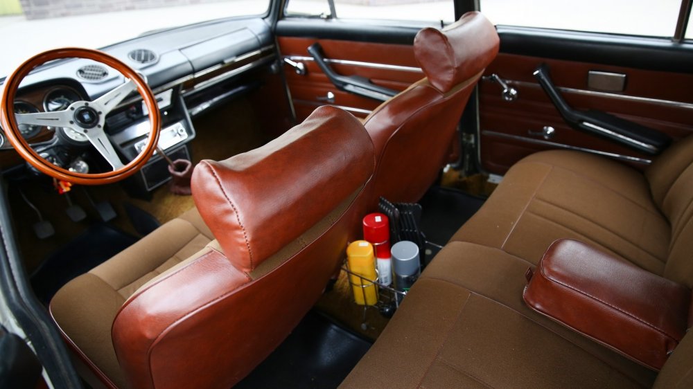 Если внешне автомобиль внушает незнающим людям ощущение тлена и безысходности, то внутри – как писал Зощенко: «сюда у них зайти очень мило». Интерьер приведен в единый цвет и заводской вид: здесь установлены сиденья от ВАЗ-21011 в «цвет» кузова автомобиля и уложено напольное покрытие от ВАЗ-2103.