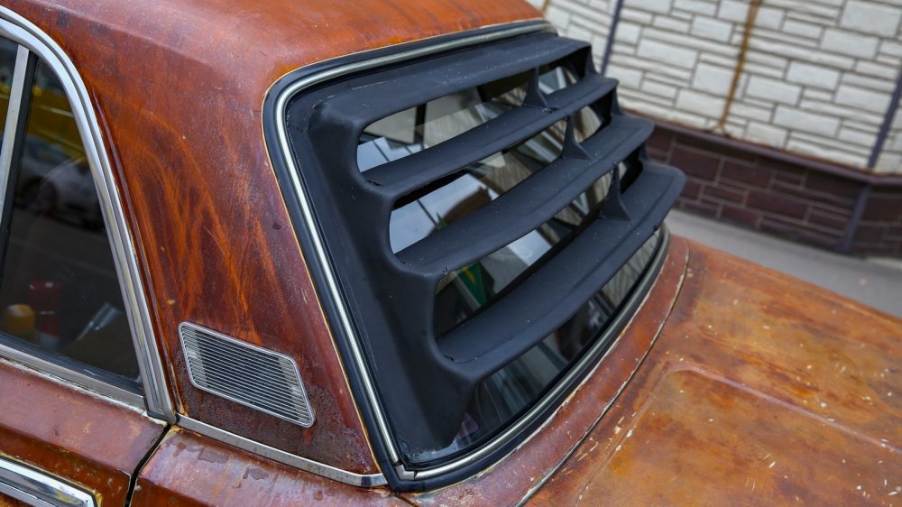 Дверь была безжалостно заржавлена: сперва с нее было удалено ЛКП, а затем деталь была обработана составом на основе соляной кислоты. Когда дверь приняла характерный ржавый оттенок, ее вымыли и покрыли алкидным лаком для приостановления дальнейшей поверхностной коррозии. Но что такое одна дверь, когда в гараже есть электричество, а зачистной диск стоит копейки?! «Под нож» пошла крышка багажника, а затем Сергея было уже не остановить. В прошлом году он «добил» даже крышу, чтобы проект выглядел окончательно завершенным.