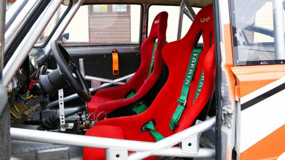 С салоном так изощряться не пришлось, здесь пошли по классическому спортивному пути – выкинули все «гражданское» на помойку, вварили каркас, установили пару спортивных «ковшей» и вживили в переднюю панель дополнительные приборы. Аккумулятор переехал на место заднего сиденья – маленький реверанс в сторону безопасности и развесовки.