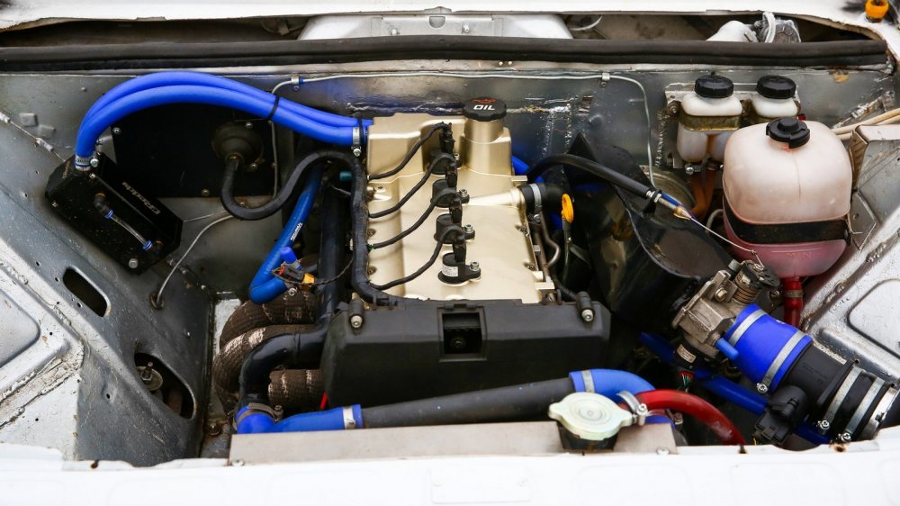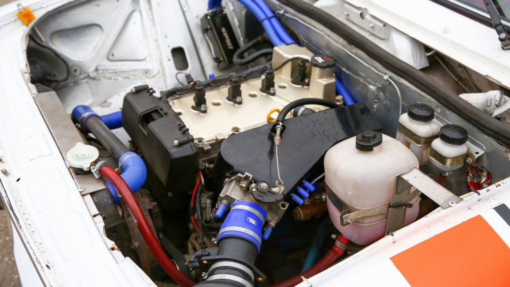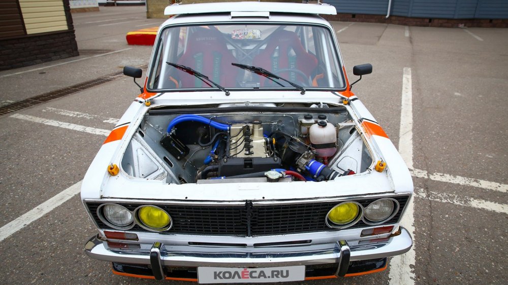 Ну а техника стала сначала главным провалом, а уже затем главным успехом проекта. Но об этом потом: сначала расскажем об успешной нынешней конфигурации. Стоковый мотор было решено заменить на ВАЗ-21126 от Lada Priora, предварительно заменив поршни на производства Мотордеталь и отбалансировав коленвал. Конечно, «свапу» сопутствовали и другие доработки: облегченный до 3,8 кг маховик, противоотливной поддон, ресивер от Турботемы, новый коллектор 4:1 в термоленте, прямоточный резонатор и маслоуловитель GReddy. Проводка была проложена заново, а в качестве блока управления выбрали Январь 7.2. После настройки мотора ориентировочная мощность составляет 110 л.с. При этом коробку передач оставили «родную» – она пока справляется с возросшей нагрузкой. Примитивная «заварка» уступила место блокировке дифференциала Вал Рейсинг с преднатягом 2 кг.