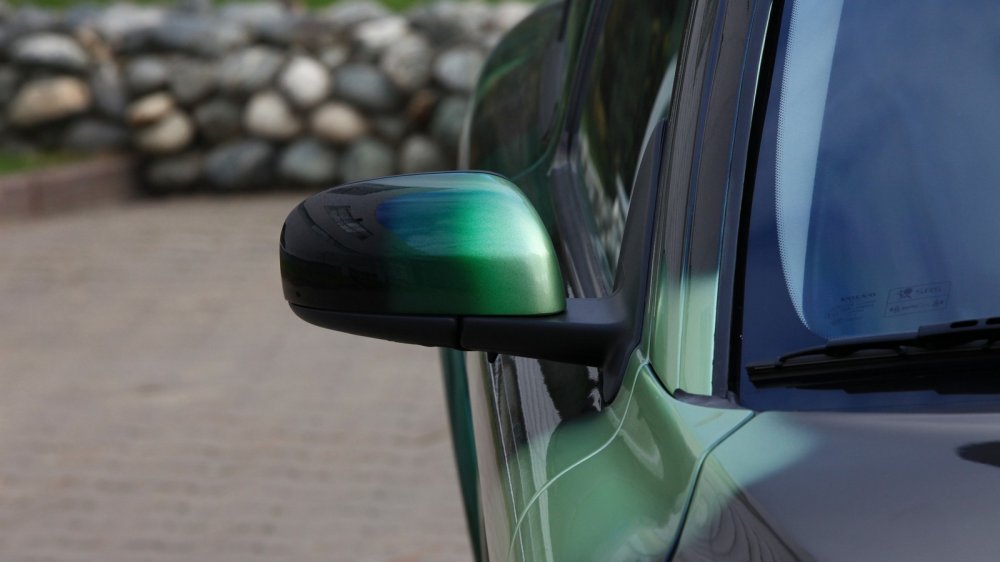 Как и прежде, фирменной мастью обуховского демо-кара была взята камуфляжная трехцветная окраска а-ля стиль «brushstroke», с которой провели немало экспериментов, прежде чем был найден наиболее удачный и гармоничный вариант расположения пятен по кузову с продуманным заходом на стекла и диски.