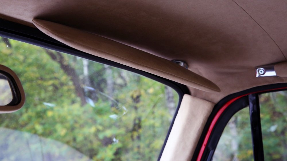 Отдельной эпопеей стал интерьер Москвича. В первую очередь, стремились следовать стилю эпохи СССР. Абсолютно весь салон, включая приборку и все мелкие детали, перешили. В качестве материала для отделки использовали кожу и алькантару бежевого цвета.