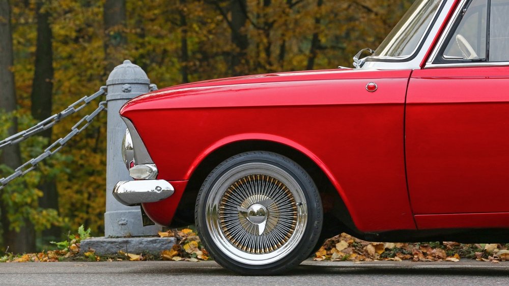 Спицевые диски на этом Москвиче, кстати, интересны и сходством своего «исторического взросления»: между ними и автомобилем можно провести любопытную параллель. Когда-то, много десятков лет назад, такие колеса были единственными и безальтернативными, и абсолютно утилитарными. Москвич в СССР хоть и не был единственным и безальтернативным, но утилитарным был. Однако с течением времени и спицевые колеса, и этот Москвич превратились в признак хорошего вкуса в ретро, и даже – чего греха таить – в настоящую роскошь!