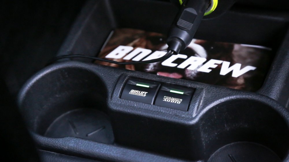 Выглядит управление пневмой примерно так: паркуешься, отходишь от машины на пару-тройку метров – и машина опускается в самый низ и встает на охрану. Потом в любой момент ее можно дистанционно поднять, сесть в автомобиль и сразу ехать. Удобно и эффектно.