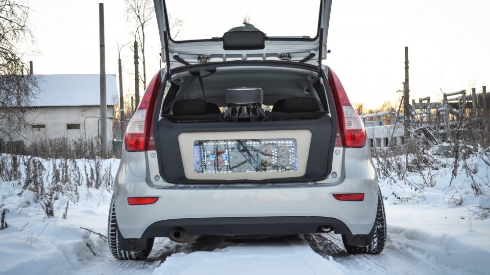 Основными параметрами при выборе базы для проекта были приятный внешний вид, большие колесные арки, кузов хэтчбек и возможность установки в багажник сабвуфера объемом 100 литров. Зимой 2014 года Андрей купил Ладу Калина 2 – новую, из автосалона. Из того, что входило в комплектацию 21921-41-012, можно отметить лишь передние стеклоподъемники, усилитель руля, ABS и подушку безопасности водителя. Впрочем, так и было задумано: постройка стэнс-проекта от комплектации не зависит. Да и от двигателя, кроме надежности, ничего не требовалось, так что 8-клапанный агрегат объемом 1,6 литра мощностью в 87 лошадиных сил вполне устраивал.