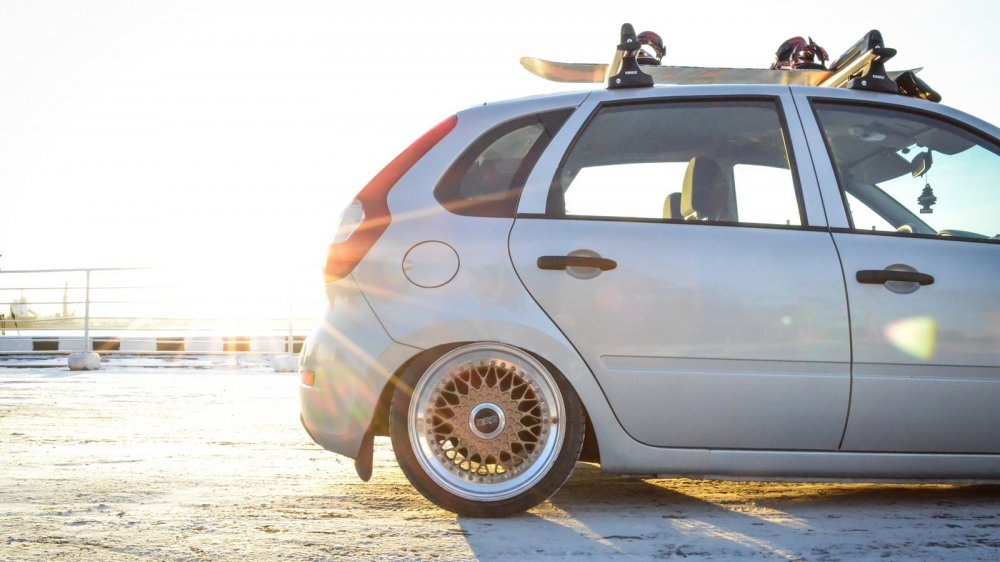 Хороший стэнс начинается с занижения и колес. Андрею посчастливилось приобрести оригинальные разноширокие 16-дюймовые диски BBS RS. Правда, с разболтовкой 5х114,3 (у Калины 4х98) – поэтому они некоторое время лежали и ждали своего часа. Для установки дисков были заказаны адаптеры на ступицу (толщиной 40 и 45 мм) в Ростове-на-Дону. После установки пневмоподвески, дисков BBS RS и соответствующего сход-развала Lada Kalina обрела совершенно другой внешний вид, который задумывался еще с момента покупки в автосалоне.