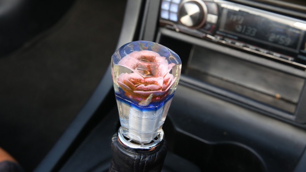Ну а еще одна маленькая изюминка салона – набалдашник-«розочка» на рычаг КПП. Это такая маленькая шутка, поднимающая настроение и владельцу, и гостям салона.