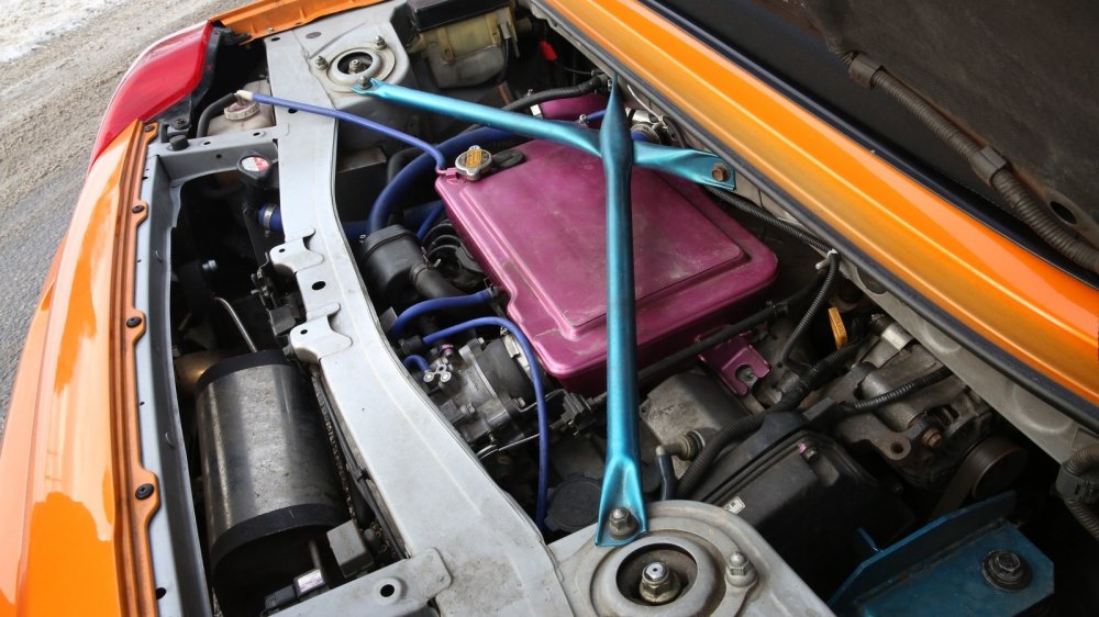 Также стоит отметить, что кузов здесь достаточно мягкий. Со временем Олег понял, что огромный ассортимент распорок для MR-S, которые ставятся в самые немыслимые места, – вещь действительно необходимая и требуется не только для уверенной езды, но и для того, чтобы кузов со временем сохранял свою геометрию.