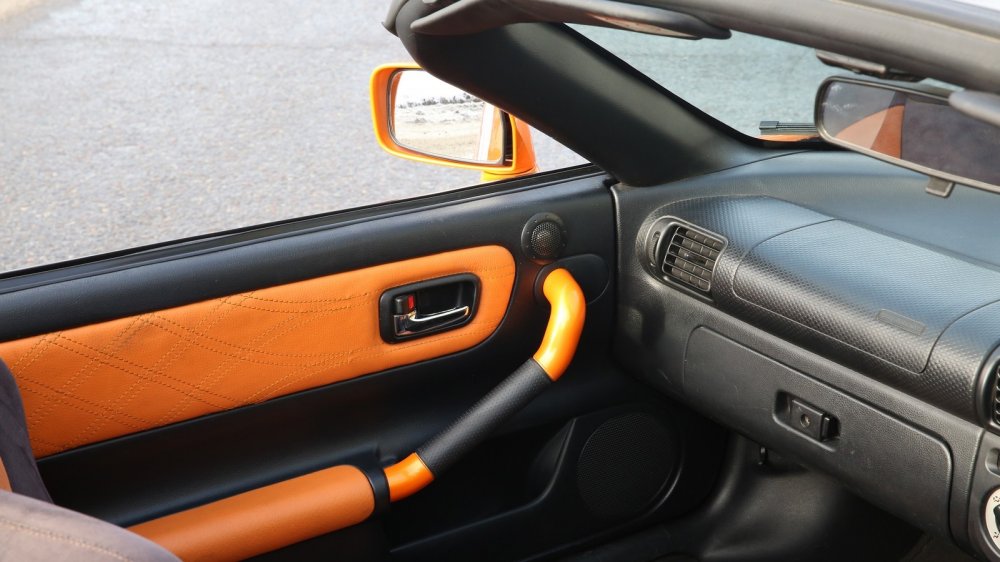 Как мы уже знаем, яркие эмоции от передвижения на этой MR-S – заслуга двигателя 3S-GTE от Toyota MR-2 W20. Он располагает не только мощностью в 245 л. с., но и большим потенциалом для ее увеличения. Коробка передач, разумеется, также от MR-2. К сожалению (или к счастью для Олега), рассказать непосредственно о свапе нам нечего: он был проведен еще до покупки MR-S нынешним владельцем. Зато известно то, что тормозит оранжевая двухдверка механизмами Sumitomo от Mitsubishi 3000 GT вкупе с составными перфорированными дисками Wilwood.
