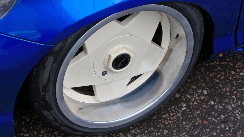 Процесс преображения Хонды начался с покупки подержанных регулируемых стоек Tein в закисшем состоянии и дисков Seiken NKB 16х8 et35 с резиной Toyo Proxes T1-R. Помощь нового приятеля на «стенсовом» Джазе, немного возни, чистка Тейнов, заказ новых гаек, полировка дисков – и вот подвеска с новыми «тапками» уже стоит. Винты на стойках скрутили в самый низ – и получилось занижение на 7 сантиметров.