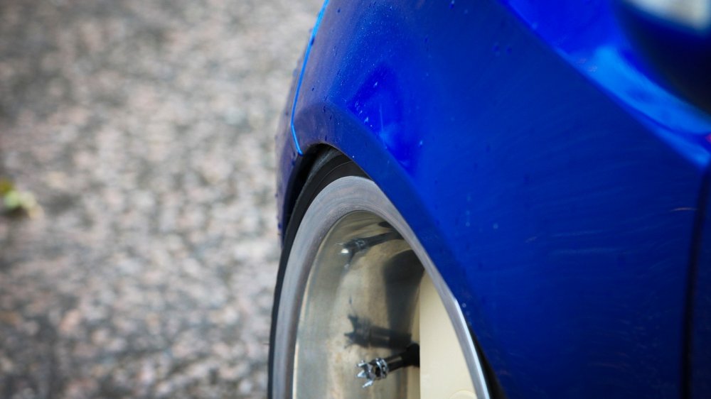 На лето этого года Слава купил улетные диски Borbet A 16х9 et15, однако с резиной они упрямо отказывались вставать на автомобиль. На помощь пришло выставление отрицательного угла развала: сзади 3 и спереди 2,5 градуса, и все равно в самом нижнем положении подвески резина еле-еле залезала в арки. В итоге название шин уже стерлось, зато протектор такой же свежий, как при покупке..