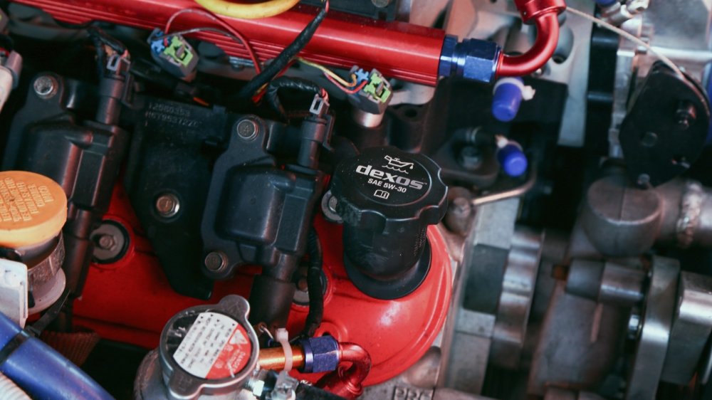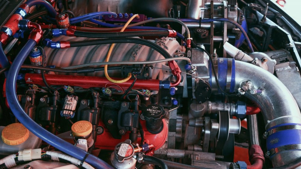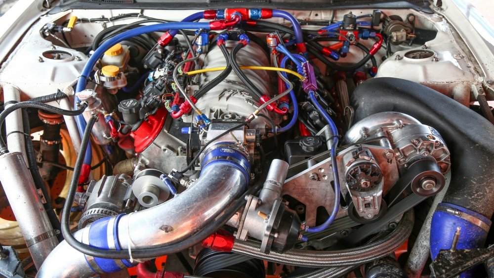Изначально оборудованный электронной дроссельной заслонкой агрегат был переделан под механическую, так как с электронной педалью газа отсечка по оборотам приводит к значительной потере тяги и распрямлению траектории автомобиля (потере заноса). С механикой подобных проблем нет. Для реализации такой замены пришлось поменять блок управления на ECU Holley, который идет в комплекте с экраном Holley, позволяющим иметь перед глазами всю информацию о работе систем автомобиля. С новым двигателем, по совету американского дрифтера-профессионала Мэтта Филда, была установлена четырехступенчатая кулачковая коробка передач G-Force GSR — крепкая и надежная, способная выдерживать нагрузки от работы огромного «табуна» лошадей.