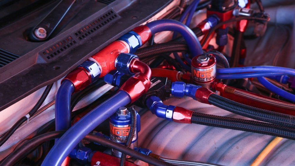 Но и это еще не все технические «фишки»! Для поддержания мощности на низких оборотах на Silvia установлена система впрыска закиси азота NOS, причем управляется она целиком и полностью блоком Holley, никаких кнопок пилоту нажимать не нужно. Перед заездом просто включаешь тумблер – и блок управления двигателем все сделает сам.