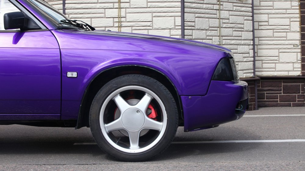 Затем настал черед очередной перекраски. Хотелось подчеркнуть, что в машину вложено много денег и сил, поэтому от «классики» Сергей отошел и выбрал эпатажный пурпурный.