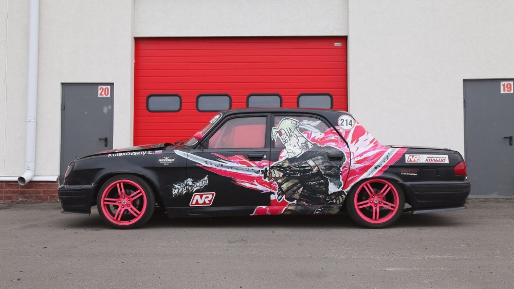 В такой конфигурации автомобиль ездит и поныне. Единственным дополнением стал вварной каркас безопасности, установленный к сезону 2015 года, когда по регламенту к соревнованиям перестали допускать машины без каркасов. Варили его Женины друзья – они же разработали для Волги идею винила, а затем и затянули ГАЗ в пленку. Рисунок, сочетающий в себе русский и японский фольклор – богатырь Алеша Попович в кимоно – привлекает внимание и недвусмысленно намекает на злую начинку отечественного автопрома. Дизайн совершенно точно отображает стиль автомобиля: это российская Волга с японским «сердцем».