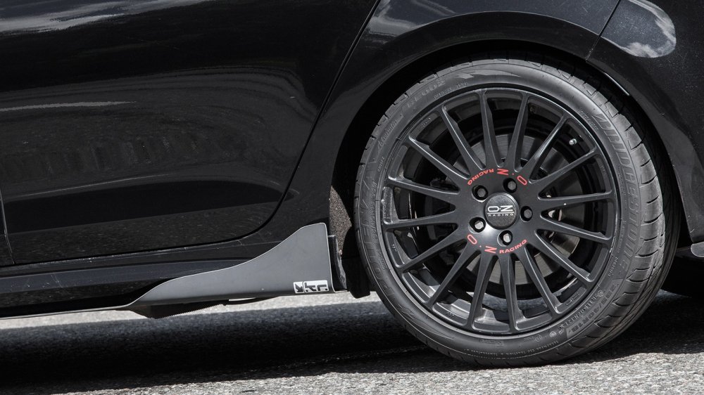 Обновленной начинке – обновленную внешность. Гольф получил обвес (передний сплиттер, боковые профилированные юбки и задний диффузор) и плоское днище, изготовленные на заказ в единственном экземпляре.
