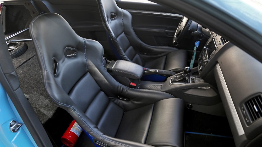 Работа закипела. Машину восстановили, покрасили в заводской цвет, перебрали мотор. Правда, по иронии судьбы при переборке поцарапали стенки цилиндров, и пришлось перейти к тюнингу: точить блок и ставить кованые поршни. Но, как говорится, все, что ни делается – к лучшему: теперь двигатель готов к «турбосценарию», если такие мысли вдруг придут в голову владельцу. Восстановленный кузов основательно занизили при помощи койловеров XYZ Racing и обули Volkswagen в широченные 10,5-дюймововые колеса. В таком виде Гольф и прибыл на фестиваль GTI Treffen в 2012 году.