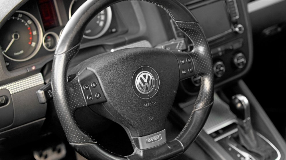 Идея постройки проекта на базе Volkswagen Golf Mk5 ютилась в голове Дмитрия давно. У него в свое время уже был доработанный пятый Гольф, но с мотором 1,6 литра. А тут на удачу подвернулся немного битый, зато R32. А это, на минуточку, уже совсем другое дело! Двигатель 3,2 литра и полный привод – вот залог успеха. А еще к ним присоединяются другие бампера, пороги, фары, фонари, спойлер, стекла иного оттенка, другие салонные вставки и сам салон, руль, ручка КПП, «приборка»… в общем, не машина – бомба!