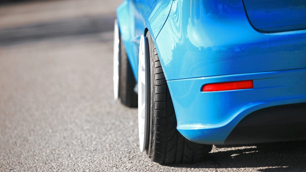 Цвет выбрали голубой, подобный заводскому, но немного другого оттенка. Дабы не наступать на одни и те же грабли, заодно изменили форму передних крыльев, расширив их примерно на 5 см, а также установили передние рычаги от Audi TT, попутно доработав верхние опоры, чтобы «завалить» колеса. Заднюю часть доработали по аналогичному сценарию – переделали арки и установили специальные рычаги с регулировкой развала.