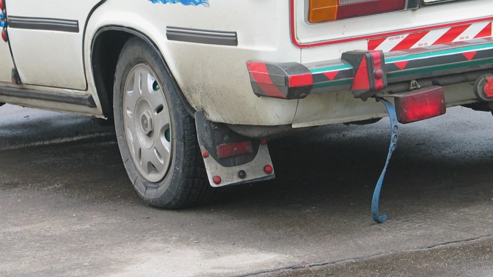 На этом фоне совершенно безобидно выглядели упражнения неспокойных автолюбителей с брызговиками. Их расцвечивали на свой лад, оковывали нержавейкой, подвешивали на цепочки, украшали катафотами и оленями, увеличивали до невероятных размеров, вырезая из подъездных ковриков. Дизайнеры Sparco, наверное, до сих пор плохо спят по ночам… Брызговики полагались каждому автомобилю согласно ПДД, их наличие проверялось при ежегодном техосмотре, поэтому придраться даже к самым вычурным конструкциям не мог ни один гаишник.
