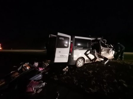 Авария произошла на 869 км дороги в Миллеровском районе Ростовской области РФ. По предварительным данным, в ДТП виновен водитель микроавтобуса, который уснул за рулем.