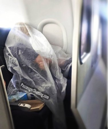 Пассажирка во время полета полностью завернулась в полиэтилен