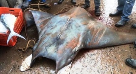 У берегов индийского штата Западная Бенгалия рыбаки выловили 800-килограммового ската