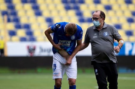 Защитник Гента Игорь Пластун во время матча первого тура чемпионата Бельгии против Сент-Труйдена столкнулся с вратарем своей команды и травмировал пенис