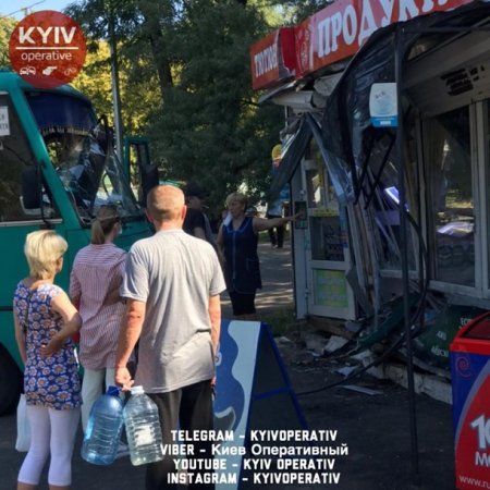 В Киеве маршрутка протаранила торговый павильон