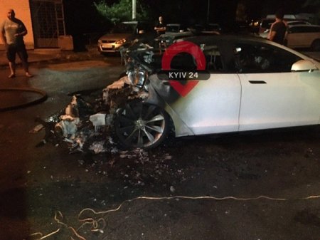 В Киеве сгорел автомобиль Tesla