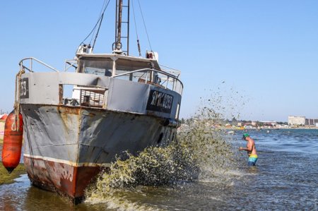 В Затоке на пляж выбросило корабль