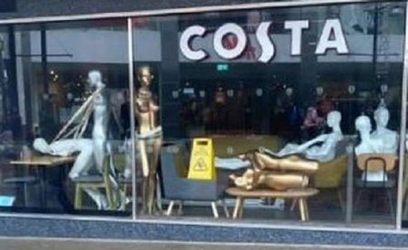 В британском городе Суиндон хулиганы украли из магазина манекены, проникли в кафе и расставили фигуры у витрины в неприличных позах