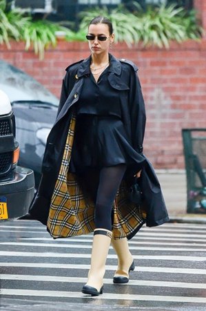 Ирину Шейк сняли в Нью-Йорке в резиновых сапогах от Chanel