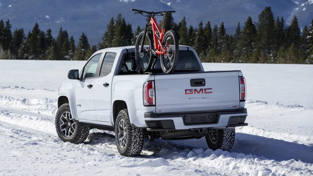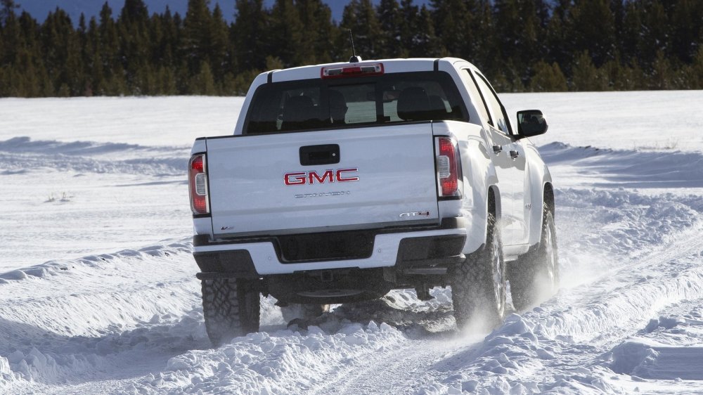 Вседорожного исполнения All Terrain больше нет, ему на смену пришла модификация с общеджиэмовским оффроудным обозначением AT4 с зубастыми высокопрофильными шинами Goodyear Wrangler DuraTrac на 17-дюймовых литых колёсах, более энергоёмкой подвеской, электронной системой помощи при спуске с горы, стальной защитой раздатки и системой полного привода с самоблокирующимся дифференциалом Eaton G80 в заднем мосту. Не бог весть какой арсенал, но для поездки на фешенебельный горнолыжный курорт, где на полноразмерном траке может быть тесновато, Canyon AT4 подойдёт идеально – можно выкатиться прямо на склон, при этом владельца такого пикапа не сочтут за колхозника – всё же это GMC, а не простонародный Chevy.