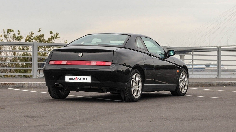 За невзрачной аббревиатурой GTV (Gran Turismo Veloce) скрывается любимец Джереми Кларксона и один из самых харизматичных спорткаров девяностых. Маленький зверёк с четырьмя глазками и крошечным клювиком замер в боевой стойке. Громадный стеклопластиковый капот объединяет в себе передние крылья, часть арок и решетку радиатора. Профиль зачищен от дверных ручек, замок багажника спрятан под поворотным значком, а идущие по бокам выштамповки словно высечены мечом. В арках красуются семнадцатидюймовые диски классического для Альфы дизайна, взятые от трехлитровой Сup-версии. Задняя часть украшена интегрированным в багажник спойлером и оптикой во всю ширь кормы – завидные детали, сделавшие бы честь иному суперкару.