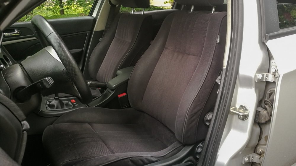Вместо шлифованного алюминия, электроприводов и кожи – пластик, механические регулировки и уютный мягкий велюр. Погодой заведует обычный кондиционер, зато радует боковая поддержка отлично спрофилированных кресел, сделавших бы честь иному спорткупе. Широко распахнутые задние двери гостеприимно приглашают на второй ряд. Здесь просторно и светло, но… только для двоих. В Альфе наличие среднего подголовника ещё ни о чём не говорит.