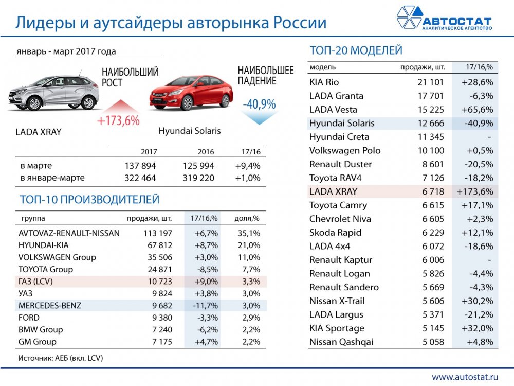 РУ: Мы осторожно оцениваем перспективы автомобильного рынка в 2017 году и не впадаем в эйфорию по поводу некоторого оживления спроса в марте. Вместе с тем, рынок неоднороден: сильные дилеры наращивают свои продажи, сильные бренды увеличивают долю рынка. Так, в компании РОЛЬФ продажи автомобилей в марте выросли на 18% по сравнению с аналогичным периодом прошлого года.