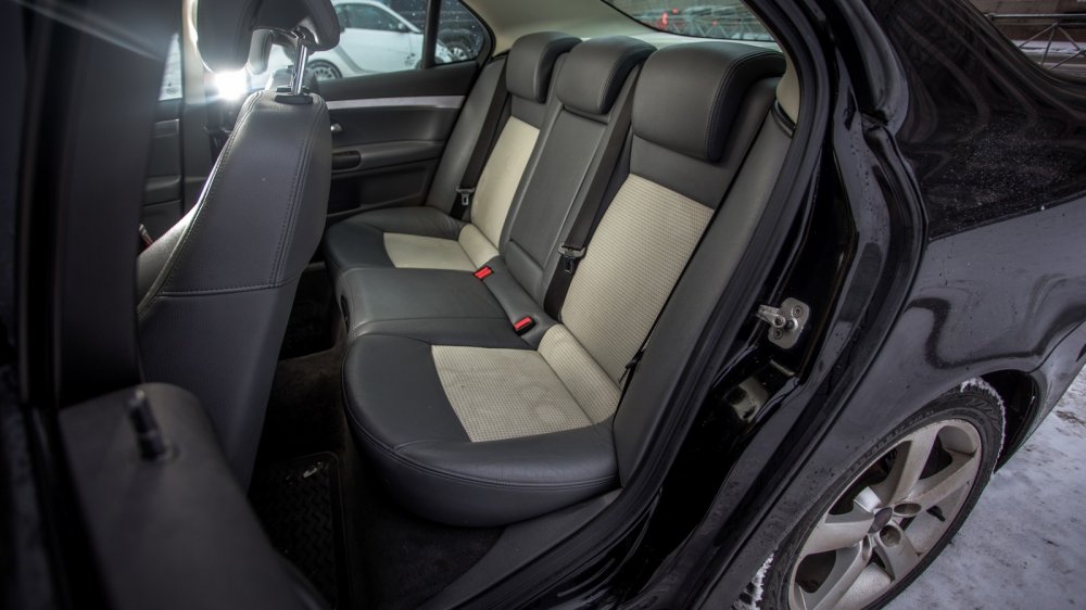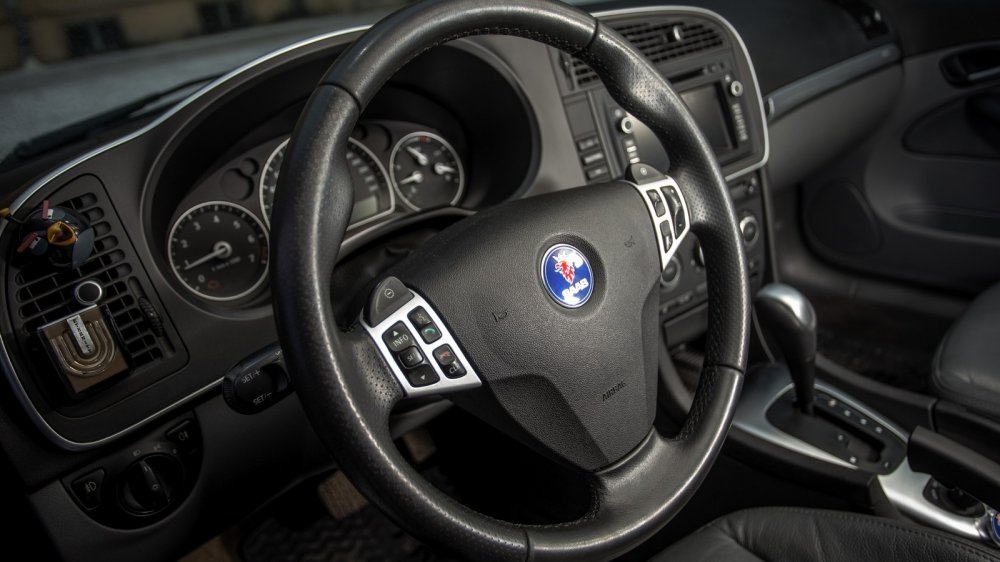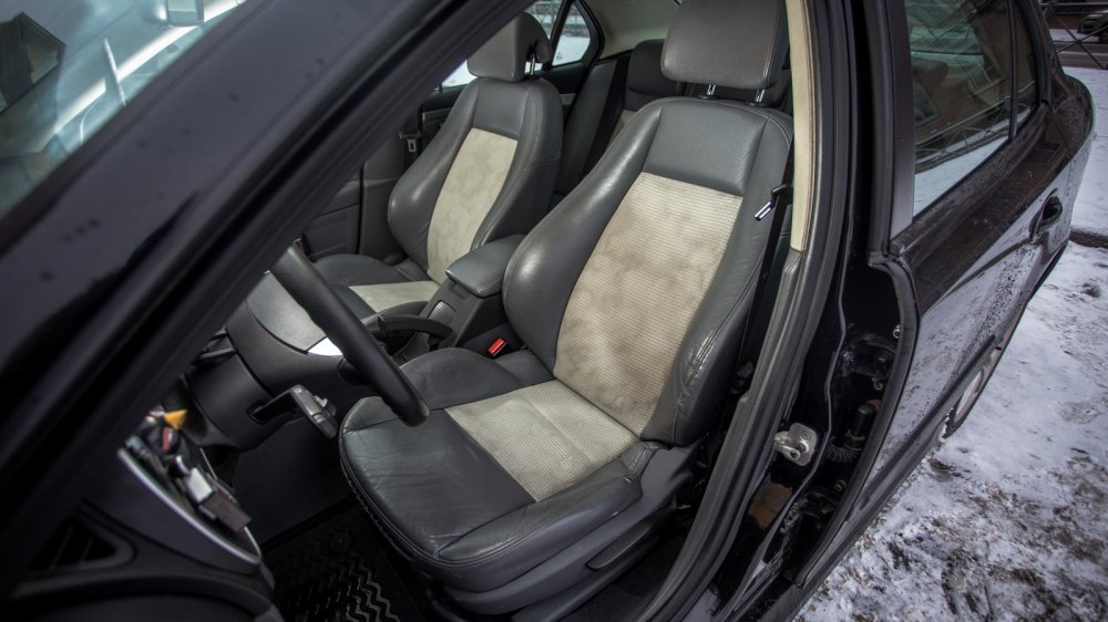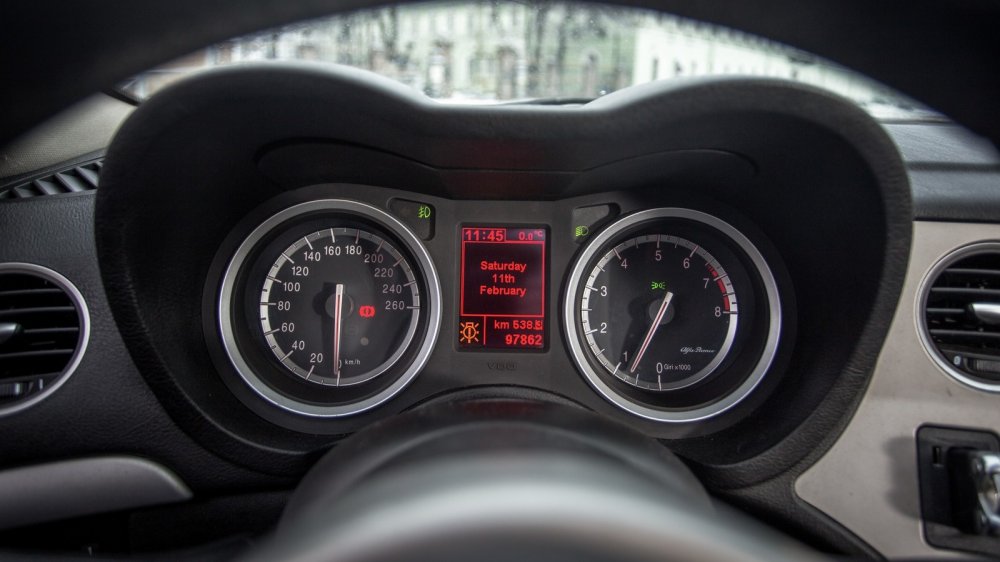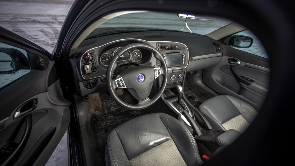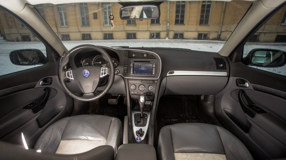 Салоны оппонентов полны фирменных «примочек». Alfa, свесив стрелки шкал вниз, упрямо гнет спорткаровскую линию и гордится дополнительными приборами на центральной консоли, общающимися с водителем на итальянском языке. Saab отвечает фокусом с подстаканником-бабочкой, выскакивающим из передней панели, и замком зажигания на центральном тоннеле. Став удобнее за счет цветного дисплея мультимедии, швед подрастерял вереницу кнопок на передней панели, отвечавших в том числе за связь с авиационным прошлым. Зато никуда не делись надписи Fasten Belts и функция Night Panel, гасящая в ночи все, кроме спидометра.