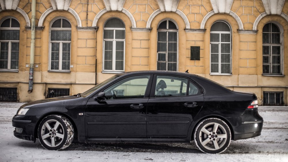 Но даже воинствующие тролли признают эстетическое превосходство шведа и итальянки. Оба хороши по-своему. Черному Саабу слегка не повезло: несмотря на 2008 год рождения, это дорестайлинг, что дает нам возможность лицезреть первородный дизайн седана второго поколения без элементов, навеянных концептом Saab Aero X. По-настоящему ярких деталей немного. Стиль задает клиновидный силуэт, крутой наклон стекол и рельефный капот, но китч – это не про Saab. Черный цвет скрадывает размер и слегка простит благородный силуэт одного из лучших представителей платформы GM Epsilon, зато маскирует молдинги и ручки дверей из некрашеного пластика, выдающие возраст модели. Экстерьер по-скандинавски минималистичен и резко контрастирует с перегруженными деталями кузовами современных авто, где дизайнеры вовсю стараются пресытить ими и автомобиль, и покупателя.