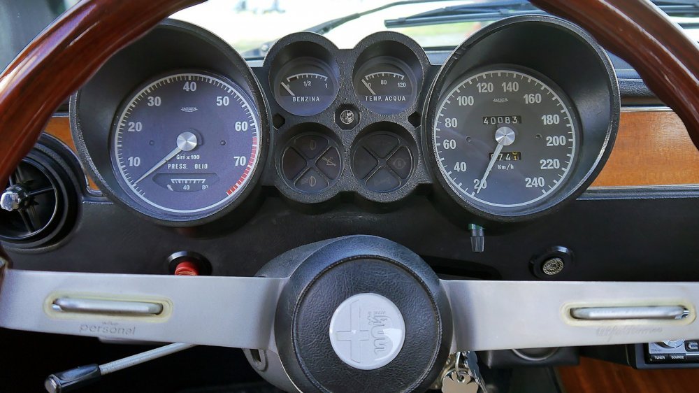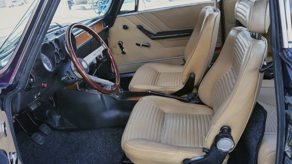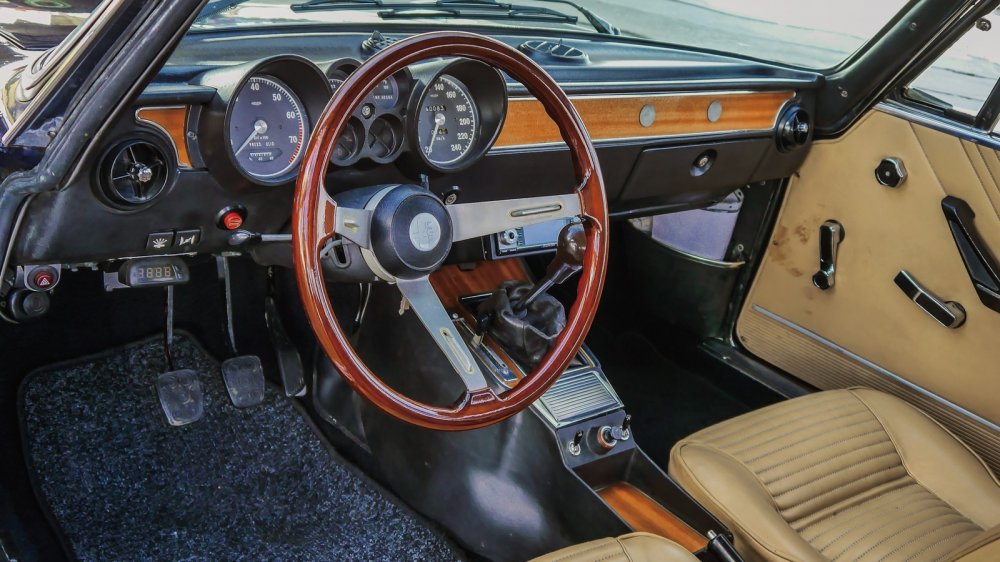 Множество мелких стильных штучек в интерьере напоминает, что мы сидим (и сейчас будем ехать!) в модной итальянской машине: кнопки сигнала на спицах руля (то, что обод деревянный, тут само собой разумеется), подрулевые переключатели, форма подголовников и их стойки... Особенно поразили последние: никогда не думал, что доведется увидеть несущие деревянные детали на автомобиле второй половины ХХ века!