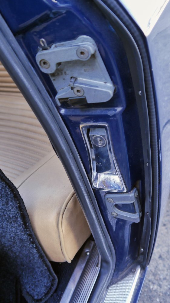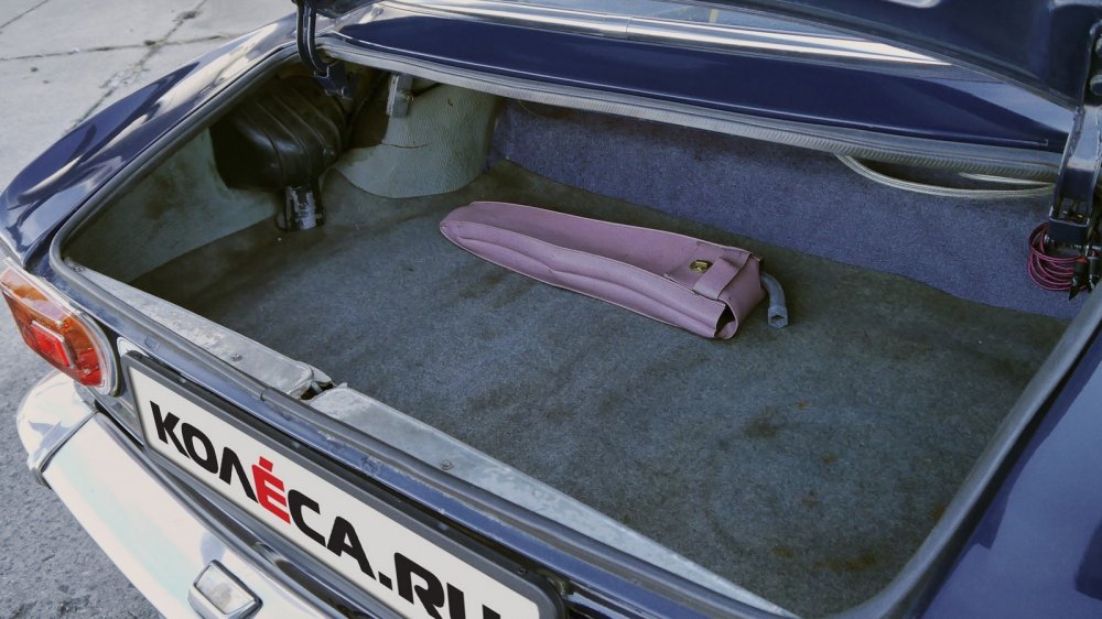 | Подголовники крепятся на деревянных пилонах | Рычаг открывания багажника спрятан в дверном проеме – как у наших Запорожцев |