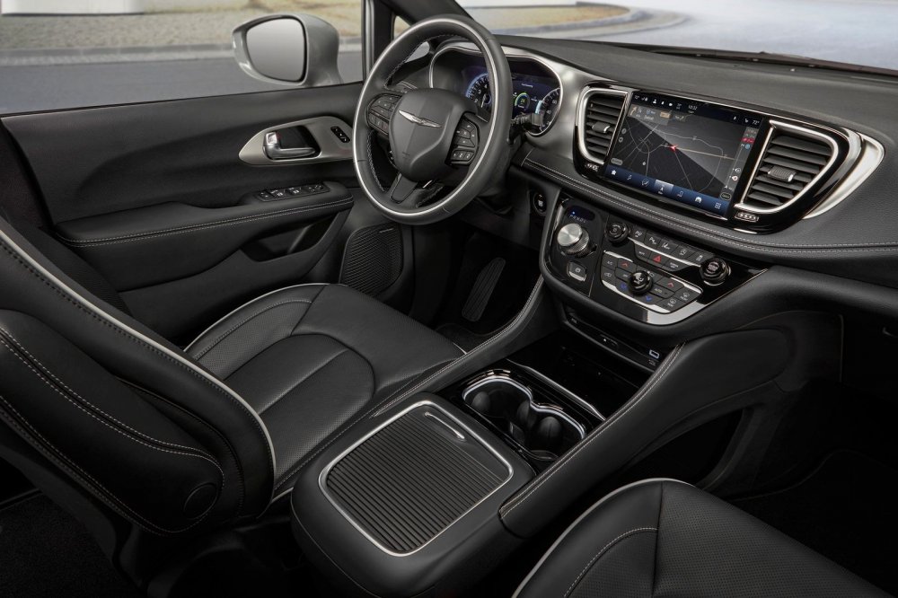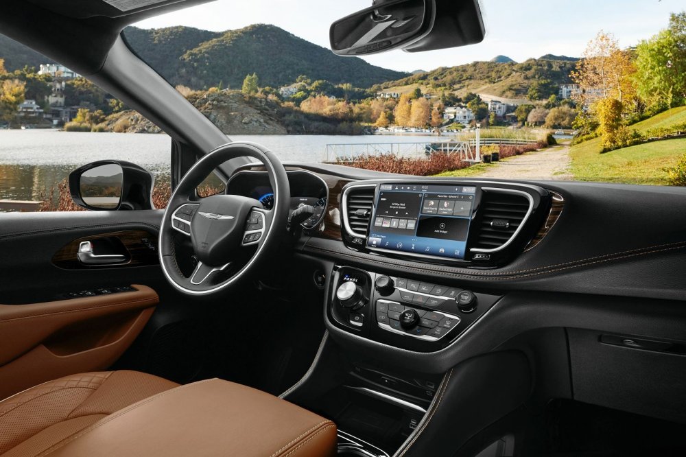 Основное новшество в салоне – мультимедийная система Uconnect 5 с 10,1-дюймовым сенсорным экраном, операционной системой Android, голосовым помощником Amazon Alexa, поддержкой Apple CarPlay и Android Auto. На экран можно вывести картинку с потолочной камеры, подсматривающей за пассажирами второго и третьего рядов – детишки не забалуют. По салону разбросаны 12 USB-портов для питания гаджетов. В багажнике прописался новый 23-литровый сабвуфер с 10-дюймовым динамиком.