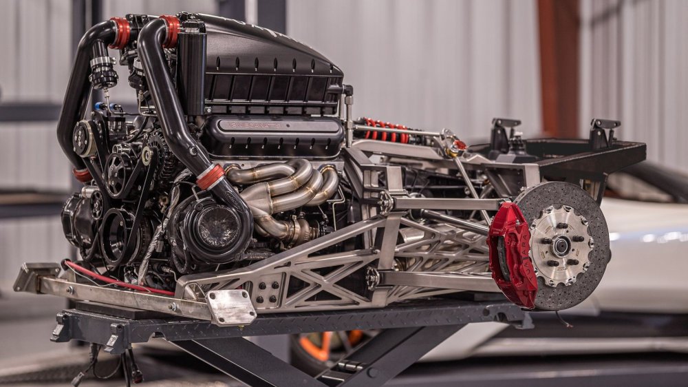 5,9-литровый бензиновый V8 с двумя турбокомпрессорами разработан при помощи фирмы Nelson Racing Engines из Чатсворта, штат Калифорния, специализирующейся на кастомных экстремальных двигателях для гонок. Его отдача при работе на бензине составляет 1369 л.с., на гоночном этаноле Е85 – 1774 л.с. Вся мощность передаётся на задние колёса через 7-ступенчатую роботизированную коробку передач итальянской фирмы CIMA, способную в трековом режиме менять переключать ступени всего за 100 мс.