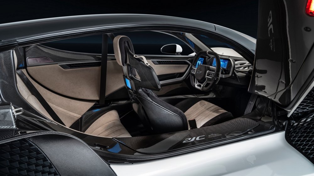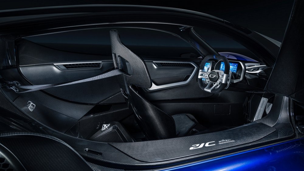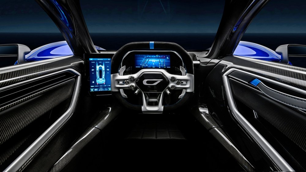 Салон американского гиперкара оформлен предельно аскетично: приборной панели как таковой нет, вместо неё – два сенсорных экрана. Посадка происходит через единственную правую дверь гильотинного типа. Для пассажира в дорожной версии Czinger 21C предусмотрен маленьких развлекательный экран, закреплённый на тыльной стороне водительского кресла.
